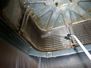 店舗出入口に近い事もあり化粧パネルやドレンパン、熱交換器も